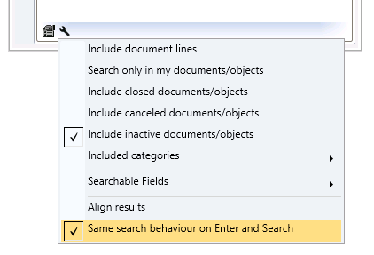 Following improvements delivered in Coresuite Enterprise Search version 8.00, we are now delivering additional new control with the name "Same search behavior on Enter and Search" to consolidate search results.,.