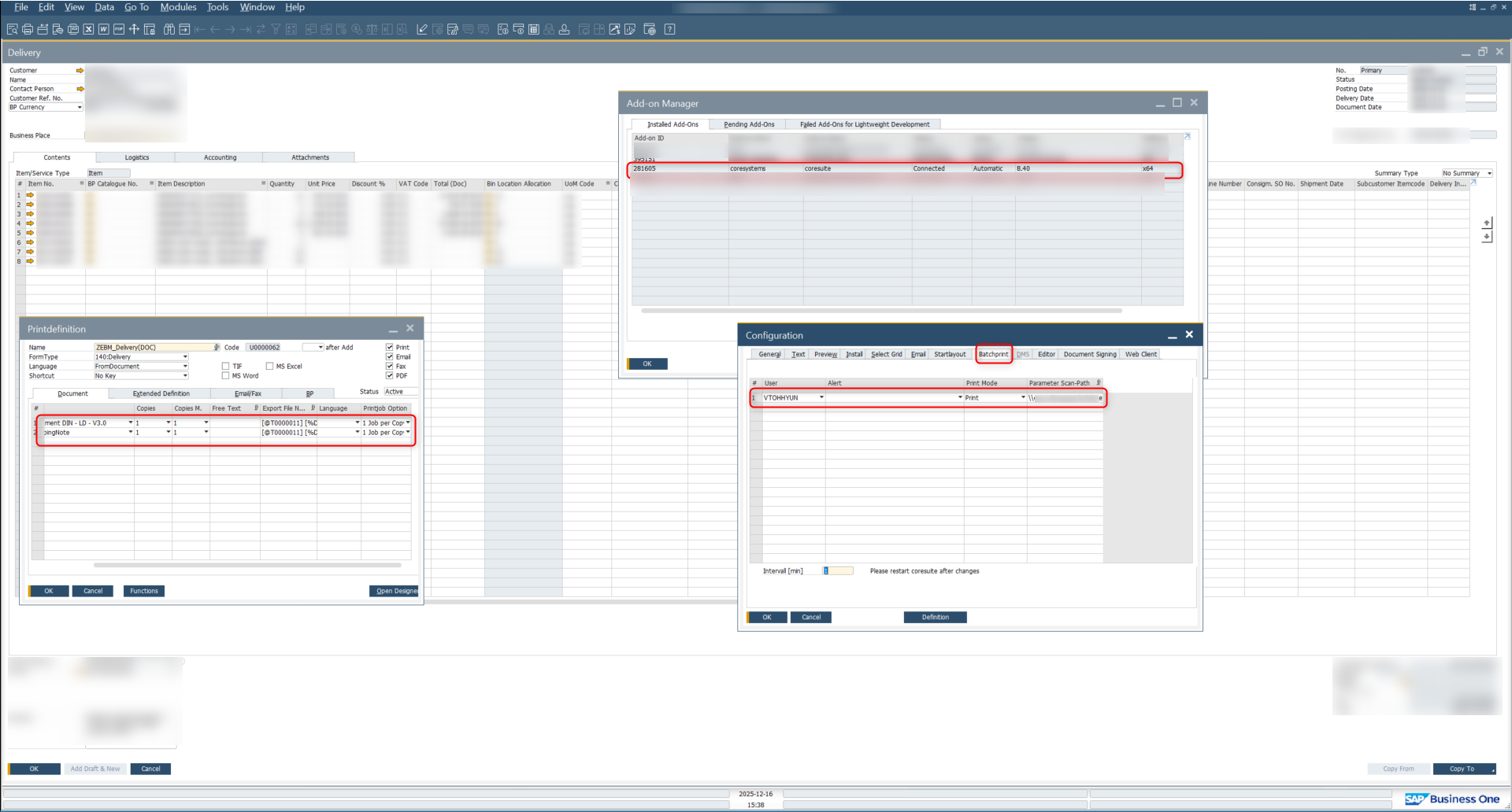 Issue: We are encountering a problem with duplicate printouts when using two different layouts in the print definition for delivery documents via Batch Print in B1IF. At times, the system prints correctly—one copy of each layout. However, in other cases, it generates two copies of each layout, resulting in duplicates.