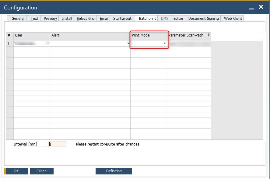 Now I have set Print mode as blank in the SAP-B1 core suite configuration. Now also the printer prints the two copies of each layout Here is the screenshot of my configuration and xml file as follows.